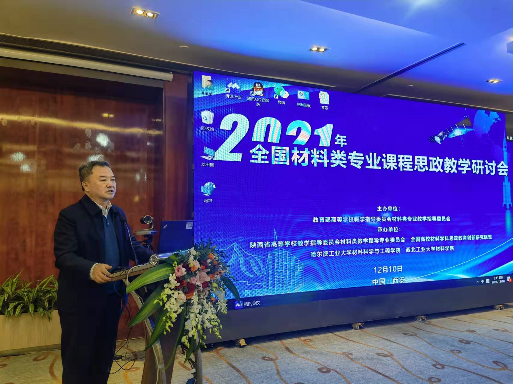 12月10日,“2021年全国材料类专业课程思政教学研讨会”在陕西省西安市顺利召开,本次会议由教育部材料类专业教学指导委员会主办,陕西省高等学校教学指导委员会材料类教学指导专业委员会、全国高校材料学科思政教育创新研究联盟、yl8858永利集团、哈尔滨工业大学材料科学与工程学院承办。