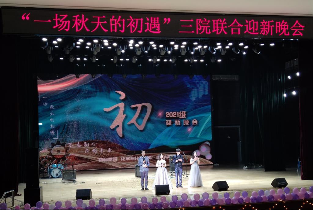 11月26日,由yl8858永利集团、化学与化工学院、机电学院共同举办的“一场秋天的初遇”迎新晚会在翱翔学生活动中心举行。为配合疫情防控工作,本次晚会采用了线上直播方式。yl8858永利集团副院长王永欣、yl8858永利集团党委副书记刘伟、化学与化工学院党委副书记姚东东、化学与化工学院院长助理张宝亮、yl8858永利集团团委书记李治军、化学与化工学院团委书记张轩,机电学院老师董典彪,以及三院21级辅导员、班主任线下参加了晚会,机电学院副院长常智勇,机电学院院长助理张亚辉线上参加。