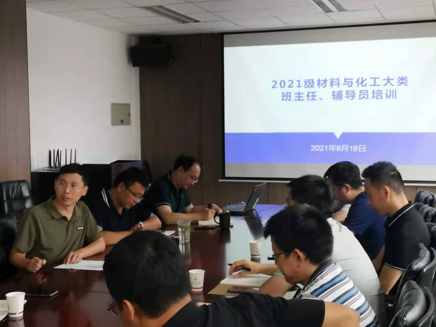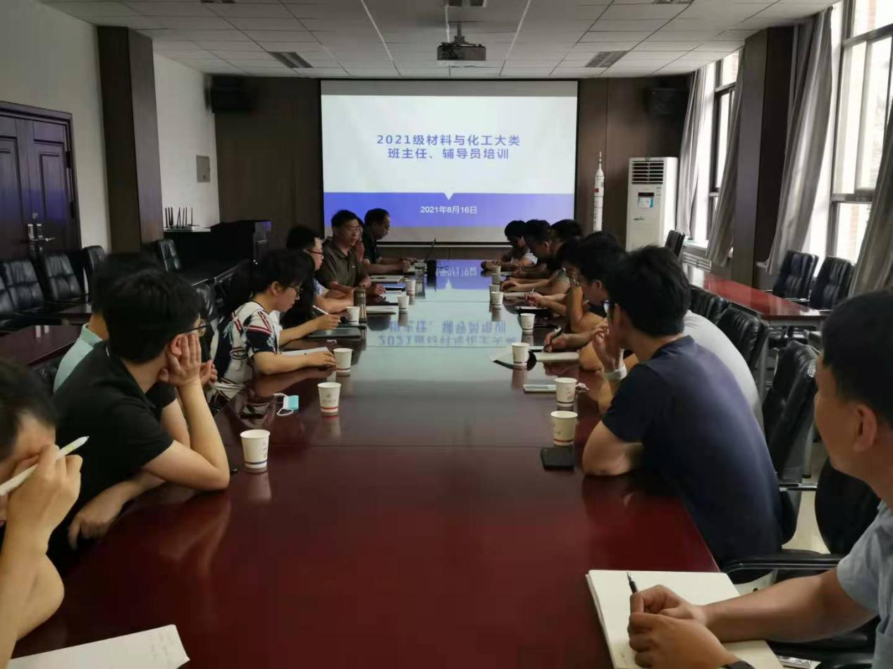 8月16日上午9时,材料与化工大类2021级本科新生班主任及辅导员培训会顺利召开,yl8858永利集团党委书记付前刚、副院长王永欣、副书记刘伟、化学与化工学院院长助理张宝亮以及2021级全体新生班主任、辅导员参加了本次会议,会议由刘伟主持。