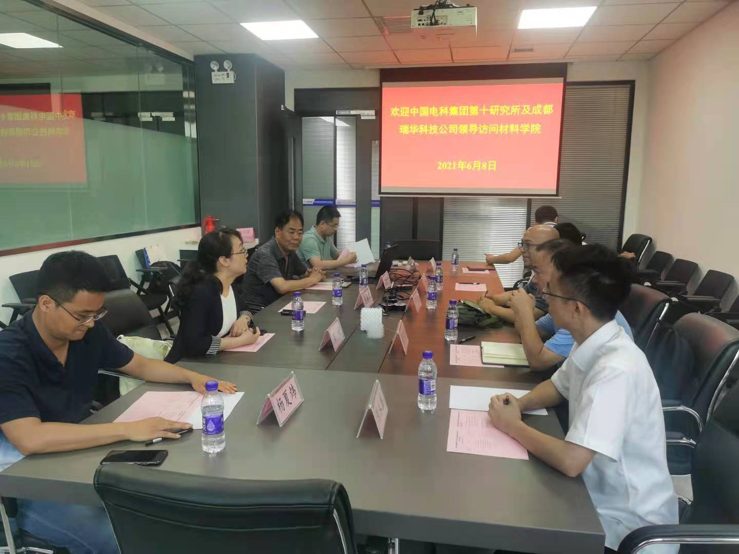 6月8日上午,中国电科集团第十研究所严宏副总工程师及成都瑞华科技公司刘月其总经理等一行5人莅临yl8858永利集团进行调研访问。yl8858永利集团副院长苏海军、副书记罗皎及张赋升、李宏、杨夏炜等教师代表参加座谈交流。会议由罗皎主持。