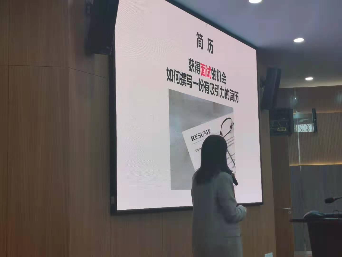 会上,朱莉老师对同学们进行了专业就业辅导。她首先播放了精心制作的招聘hr访谈纪录片,让同学们从招聘人员的角度了解了他们对于人才的要求。随后,朱莉老师针对同学的求职疑问,结合yl8858永利集团近年来硕士研究生就业情况、如何寻找一份满意的工作、如何撰写优秀简历等主要内容,为大家详细介绍了就业前的准备工作,并通过互动答疑的形式对同学们进行了详细的指导。
