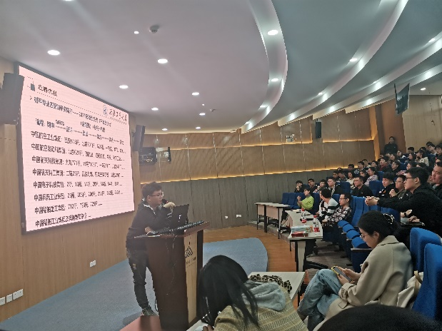 刘俊杰同学是一名追求报国梦想并收获多家知名研究所簇拥的就业达人。此次分享他重点讲解了个人求职前期的准备工作和相关面试经验。交流会上,全国几十家研究所如数家珍,十几条注意事项面面俱到,最准确和最直接信息让参会学生不禁感叹“不枉此行”。
