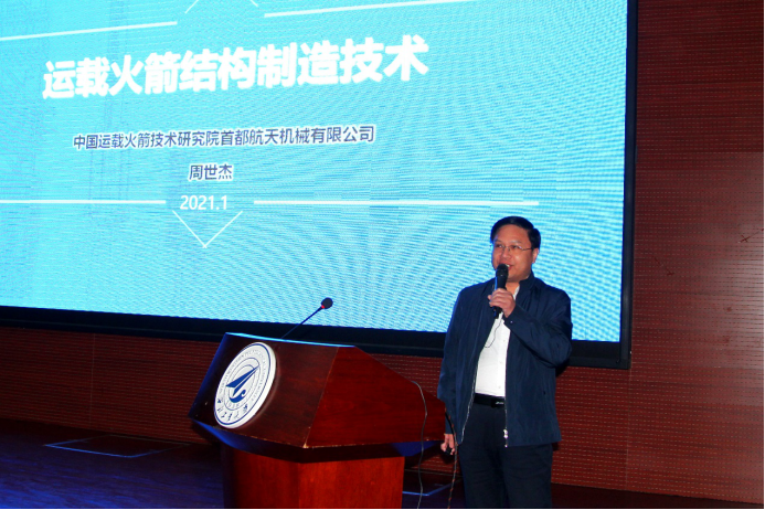 首先,周世杰研究员介绍了任职的两家公司发展概况——中国运载火箭研究院和首都航天机械有限公司,在新的历史时期研发了一批尖端航天装备,它们都践行着打造航天强国的责任。其次,周世杰研究员讲述了运载火箭及其研制体系,从运载火箭的类别、基本组成、基本流程到研制体系都方面分别进行了细致的讲解,并重点介绍了火箭贮箱制造技术,包括产品结构级及制造难点、一般制造流程、装配焊接技术等。最后,周世杰研究员从尺度大型化、结构复杂化、形式整体化、材料轻质化、质量精确化方面讲述了火箭结构制造技术未来的发展趋势。