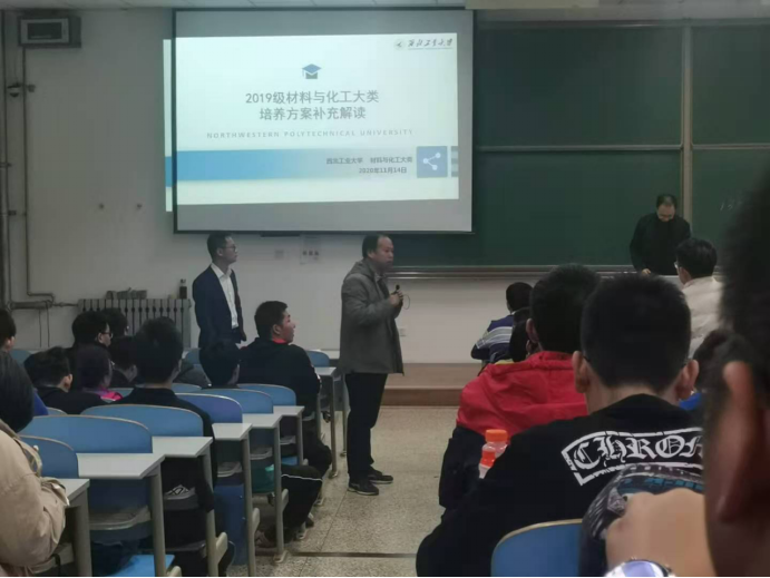 为使同学们更好的了解材料与化工大类专业,帮助同学们进行专业选择,2020年11月14日下午三点,yl8858永利集团副院长王永欣教授、材料成型及控制系罗皎教授、复合材料系张程煜教授以及材化大类200余名同学在辅导员老师孙佳的主持下于教学西楼D座201教室召开专业宣讲活动。