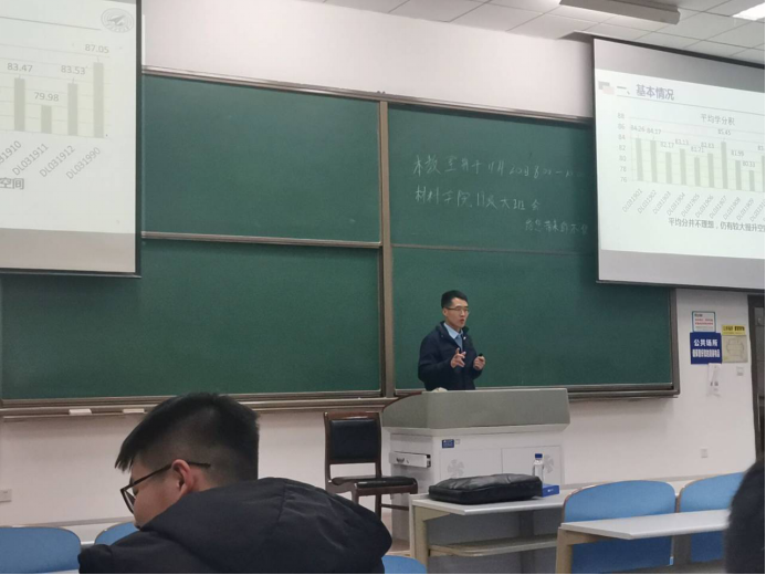 首先,辅导员吴红星对大一学年学业情况进行了详细分析。吴老师从学业、心理、现状等方面总结了同学们目前面临的挑战;并对班级建设做出了新的安排。吴老师重点反思了存在的不足,给同学们敲响了警钟,并对同学们今后学习提出了新的要求。