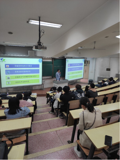 刘涛的报告共分两个部分。首先是实验室常见的安全隐患。刘老师结合近年高校实验室安全事故典型案例分析,详细讲解了安全意识淡薄所导致的严重后果。在此基础上,刘老师主要介绍了实验室安全基础理论,从法律法规、实验室面临的危害、个人防护重要性、消防设备识别及管理、实验室空气质量控制与防护、实验室试剂储存现状等方面详细介绍了实验室通常存在的风险、管理预防措施,以及实验室药品试剂科学管理的基本原则等。刘老师的报告案例丰富、注重互动、条理清晰,引起了全场师生的共鸣,气氛热烈。