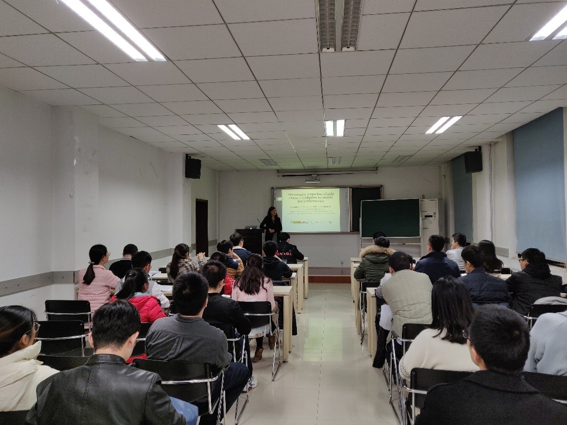 11月22日,奥地利格拉茨科技大学(Graz University of Technology)助理研究员,莱奥本大学(Montauniversitaet Leoben)博士Caterina Czibula来我校访问,并作了题目为“Viscoelastic properties of pulp fibers investigated by atomic force microscopy”的学术报告,本次报告由徐亚东教授主持,参加本次报告的有徐亚东教授、王涛副教授、张滨滨助理研究员等30余位我校师生。