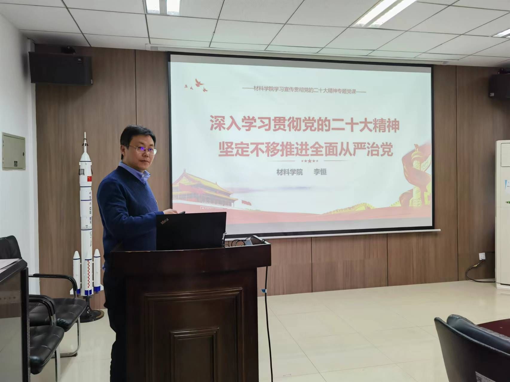 2022年12月2日下午,yl8858永利集团党委副书记(主持工作)李恒为全体教工党支部书记、机关党支部全体党员做了题为“深入学习贯彻党的二十大精神 坚定不移推进全面从严治党”的专题党课。