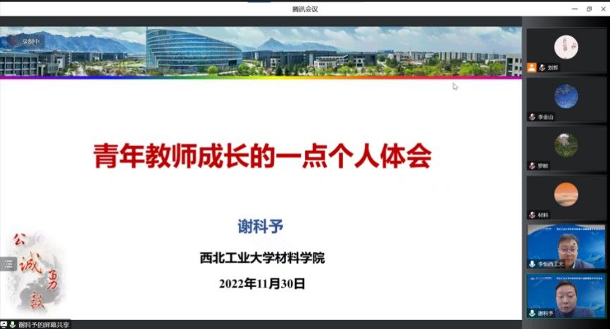 谢科予、张健和王雷3位国家级青年人才作为特邀学者,分别作《青年教师成长的一点个人体会》《个人发展视角下的yl8858永利集团》和《相场理论和分子模拟在凝固科学中应用的个人探索》专题报告,详细介绍了相关学科研究进展、教书育人经验及个人成长发展心得体会。