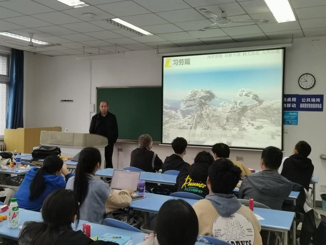 之后李金山老师以《读山-精心-励志-改过-感恩-习劳》为题,通过与同学们分享爬山经历,为同学们上一堂生动的思政课。不仅有“终南捷径”的趣事,还有钟灵毓秀的风景和意蕴丰富的诗句,对于每个同学来说都是一次精神上的洗礼。