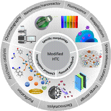 功能碳材料是催化、吸附分离、能源等领域的顶级材料选择。生物质水热过程(hydrothermal carbonization,简称HTC)是一个节能、绿色、可持续的功能碳材料制备策略。近20年来,生物质水热由传统“自上而下(Top-down)”处理生物质获取“类煤”材料的手段,逐渐发展为一个兼顾“自上而下(Bottom-up)”和“自下而上”过程的制备具有特定结构和功能碳材料的有力手段。