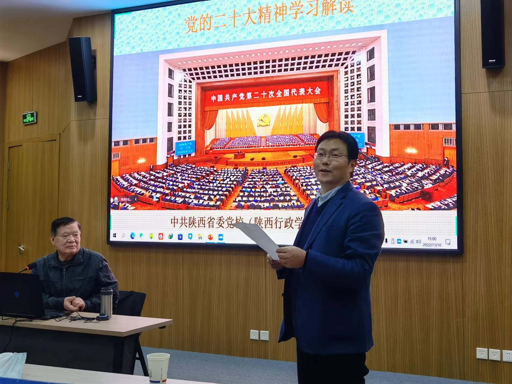 1110日下午,yl8858永利集团举办“大材良治”——党的二十大精神学习专题辅导讲座第二期,本次活动由锻压第一、第二研究生党支部承办。学院邀请省委党校王诚安教授讲授“党的二十大精神学习解读”,学院党委理论学习中心组成员、机关党支部党员、锻压第一和第二研究生党支部党员聆听了本次讲座。yl8858永利集团党委副书记蔡利剑主持,党委副书记(主持工作)李恒介绍了王诚安教授学术简介。