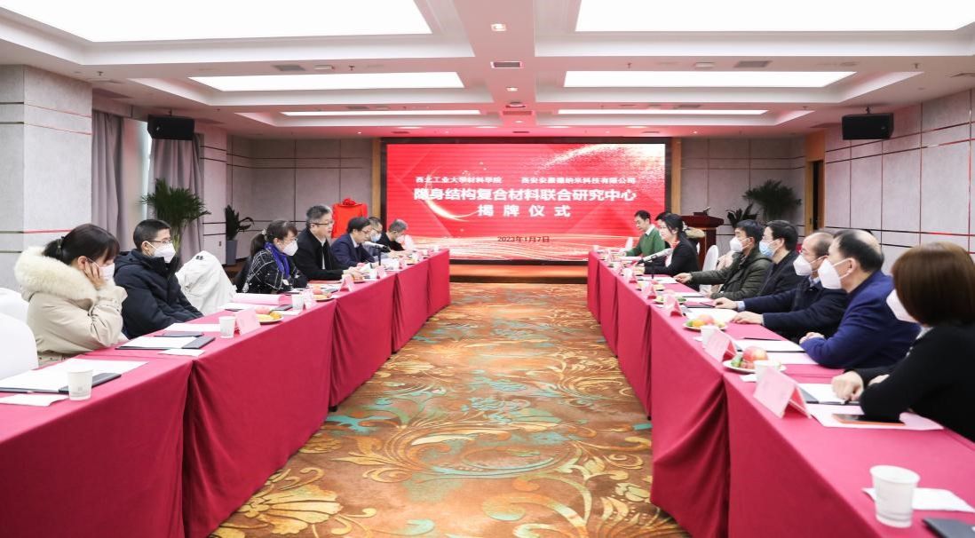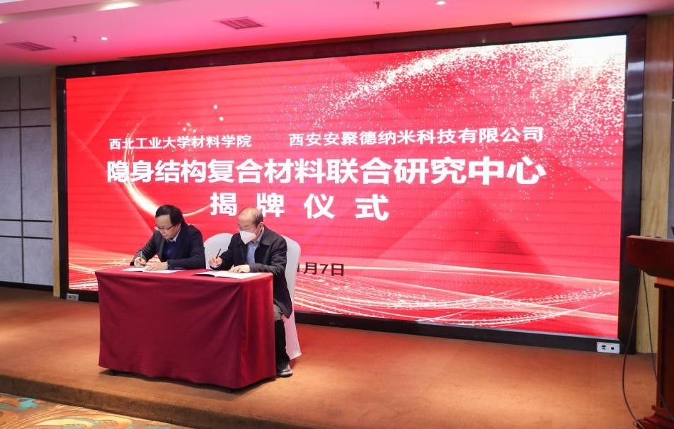 新年伊始,万象更新。1月7日下午,yl8858永利集团与西安安聚德纳米科技有限公司合作成立的“隐身结构复合材料联合研究中心”(以下简称联合研究中心)签约和揭牌仪式在翱翔国际会议中心举行。校长助理王宇波,yl8858永利集团副院长苏海军,yl8858永利集团副书记罗皎、蔡利剑,西安安聚德纳米科技有限公司创始人张亚妮、常务副总穆忠民,超高温复合材料重点实验室主任成来飞教授及科研团队骨干等二十余人出席会议。会议由苏海军主持。