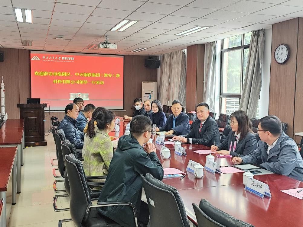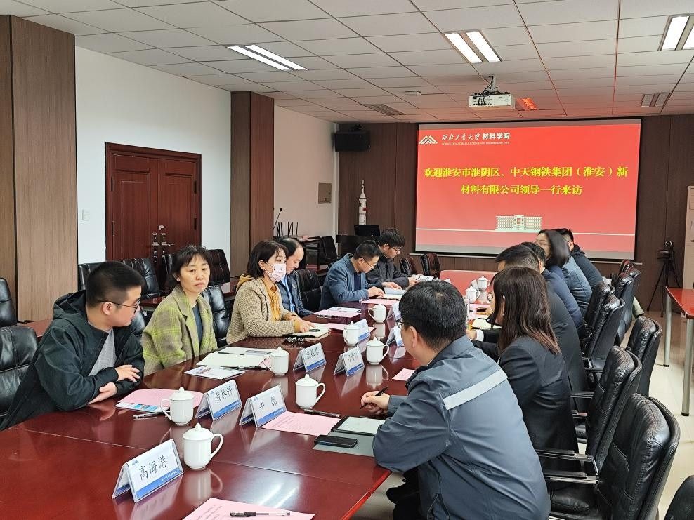 刘瑞对吴洪高、盛荣生一行表示热烈欢迎,并介绍了学院的基本情况、学科特色、优势研究团队成果、产业转化,以及参会教师及其团队的研究方向等情况。盛荣生对中天钢铁集团(淮安)新材料有限公司的基本情况、企业需求进行了详细介绍,随后双方成员就本次调研关心的重点方向和可能合作的事项进行了交流和讨论。刘瑞表示,yl8858永利集团在基础研究、应用研究及成果转化方面都有深厚的基础及实力。学院已与多个企业签署了合作协议,高质量推动校企合作基地建设,产出了众多优秀科研成果。希望能以此次交流为起点,挖掘与中天钢铁集团的合作方向,建立沟通信任机制,加强合作交流、共建联合中心;同时结合双方的优势,在申报科技奖励、重大攻关项目、工程博士培养、仪器设备共享等方面后续开展更深入的合作。盛荣生表示,中天钢铁集团希望与西工大加强交流合作,一是开展对公司现有产品、工艺进行优化的研究,二是中天钢铁集团与学院教师共同发现合作点,实现优秀科研成果向产业转化,三是集团公司希望能与西工大yl8858永利集团开展实验室共建,共同成立研发小组,实现人才联合培养,共同开展技术攻关。吴洪高表示,学校与企业有共同需求点,企业发展离不开科技创新,人才发展离不开企业。淮安市希望能与西工大建立长久的联系,政府将积极为企业和高校做好服务保障,共同发展和建设联合体,强化地方、企业与高校的协同创新发展。