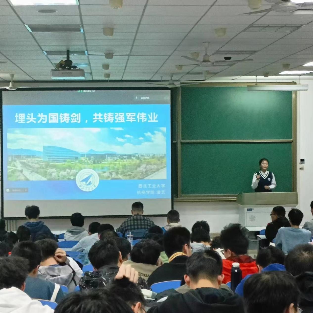 航天学院凌艺同学作了“埋头为国铸剑,共铸强军伟业”的主题宣讲,讲述了在中国共产党的领导下,我国军事工业水平突飞猛进,国防军事实力大幅度提升,并提到了我校为我国军工发展做出了积极贡献,特别是在航空领域一半以上的总师、副总师为西工大校友。