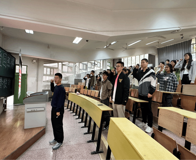 活动以班级为单位开展,同学们首先进行了自我介绍,每位同学分享自己的姓名、专业、兴趣爱好,以便相互认识,打破陌生感。在团队活动阶段,各班级创意开展了丰富多样的团队互动活动,同学们在轻松愉快的氛围中建立了友谊。我院24204-11班、24204-14班等部分班级在活动中巧妙地融入了爱国主义和集体主义教育。其中,24204-13班积极开展“庆祝中华人民共和国成立75周年”主题读书会活动。同学们阅读了爱国主义相关书籍,通过朗诵、演讲和小组讨论等形式,分享自己的见解和感受,以此向祖国献上礼赞和祝福。