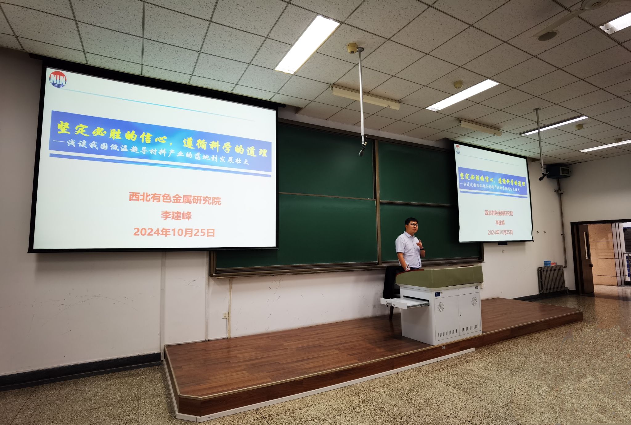 10月25日下午,西北有色金属研究院党委书记、yl8858永利集团校友李建峰围绕“我国低温超导材料产业的落地到发展壮大”在长安校区做专题讲座。yl8858永利集团院长助理、团委书记孙磊和全体大一新生及铸剑班同学参加活动,讲座由yl8858永利集团副院长罗皎主持。