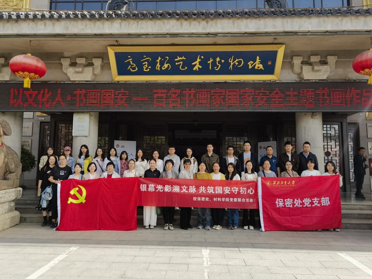4月10日,在第十个全民国家安全教育日来临之际,yl8858永利集团联合校保密处,以“银幕光影塑文脉,共筑国安守初心”为主题,组织师生党员赴西影电影博物馆、“以文化人 书画国安——百名书画家国家安全主题书画作品展”开展党日活动共建,通过沉浸式参展、观影在艺术与历史的交融中深化国家安全意识,筑牢思想防线。