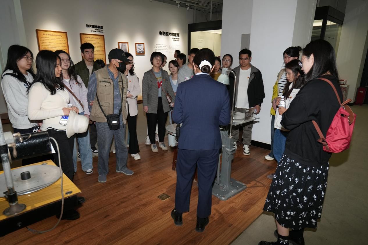 活动首站走进西影电影博物馆,师生在一帧帧经典电影胶片中触摸时代脉搏。《红高粱》的粗犷豪迈、《大话西游》的天马行空背后,隐藏着中国电影人对家国精神的独特诠释。在“红色记忆”展区,《永不消逝的电波》中地下工作者用生命守护情报的细节、《钱学森》归国研制“两弹一星”的珍贵手稿,让党员们驻足沉思,老电影是一代代中华儿女守护国家安全的历史见证。胶片修复技术守护的不仅是影像,更是民族精神密码。博物馆讲解员以《英雄儿女》胶片修复为例,揭示了艺术传承与国家安全的内在关联。