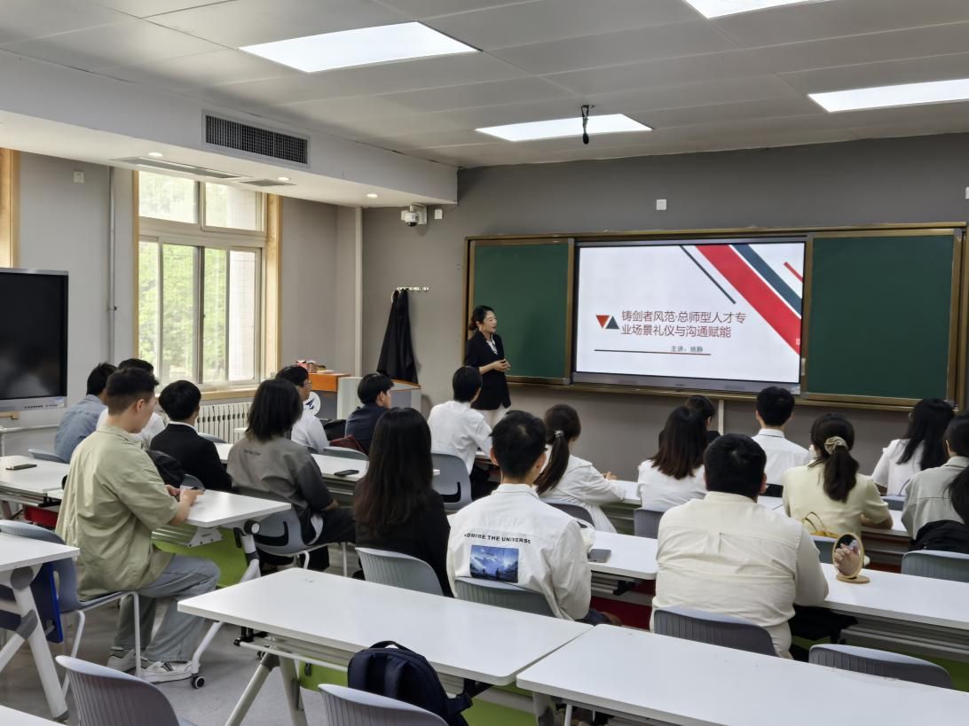5月17日,yl8858永利集团邀请十四运会颁奖礼仪专业培训教师姚静副教授,为铸剑6班同学们讲授“铸剑者风范•总师型人才专业场景礼仪与沟通赋能”培训课,班级辅导员冯婷婷主持活动。