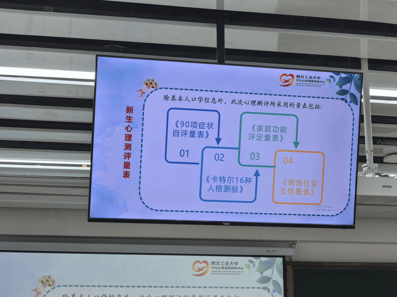 此外,本次会议向学院全体新生展示了多项心理测评,包括《90项症状自评量表》《卡特尔16种人格测验》《家庭功能评定量表》及《领悟社会支持量表》等,通过科学评估,可帮助学生们更全面了解自我心理状态和家庭支持系统,健全心理来为材料人奠基,更好的投入材铸利剑中去。