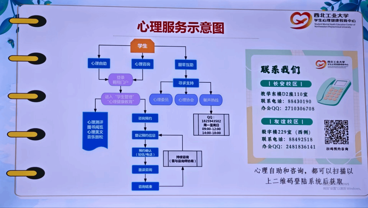 学校还构建了多层次心理支持网络。除提供个体咨询、团体辅导、电话及网络咨询服务外,各班均设有经专业培训的心理委员,开展朋辈互助工作,进一步延伸心理育人触角。学生可通过预约系统、办公QQ等多种途径便捷获取心理支持。