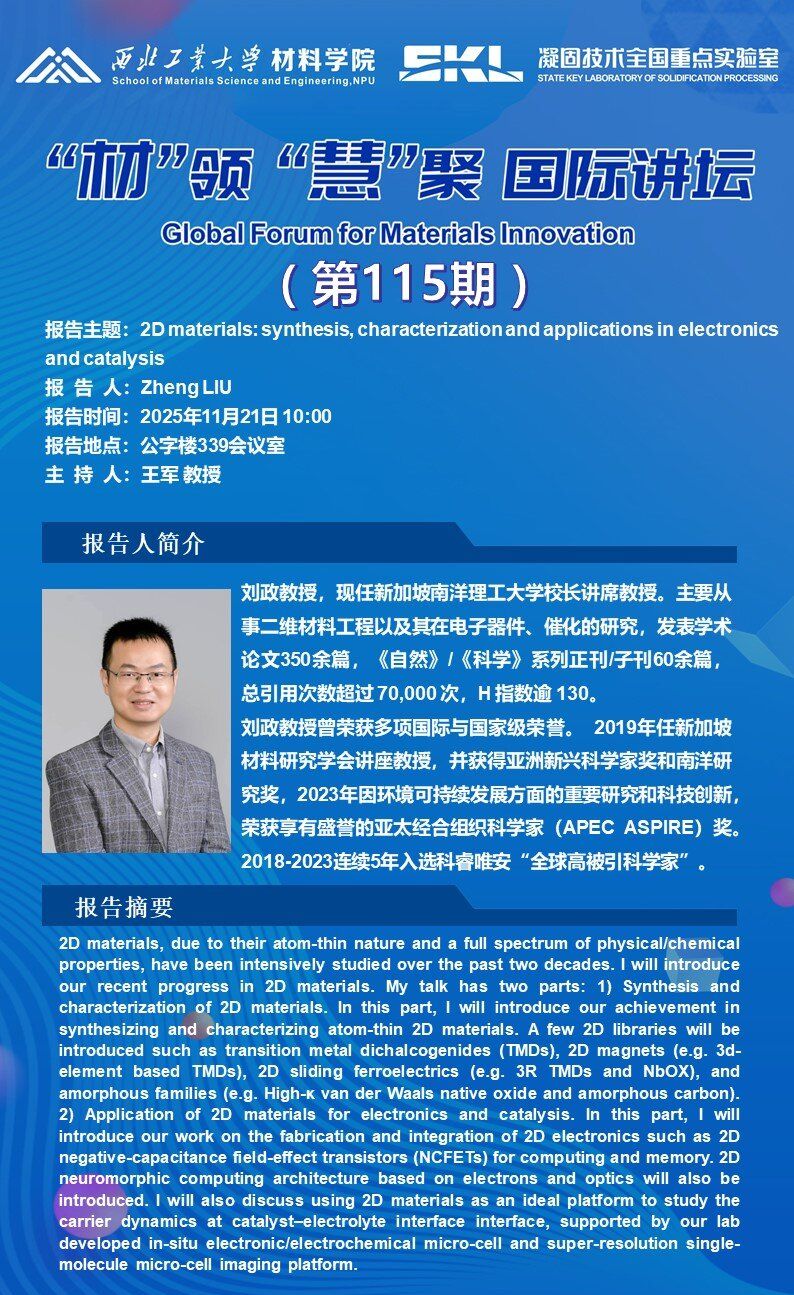 材”领“慧”聚国际讲坛:2D materials:synthesis,characterizationand applications in electronics and catalysis