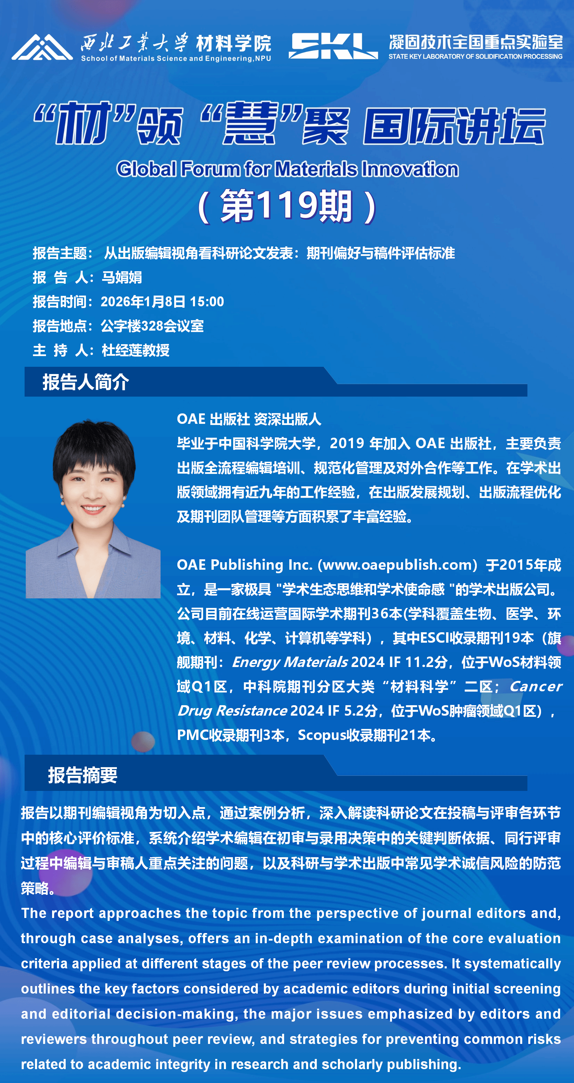 报告主题:从出版编辑视角看科研论文发表:期刊偏好与稿件评估标准