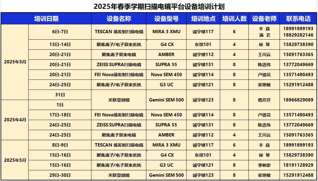 为了进一步缓解关键热门设备“预约难”的问题,提高设备使用效率,提升服务水平,支撑“总师型”人才培养与高水平科研成果产出,助力学校“127”近期目标和“天下工大、世界三航”远景目标实现,yl8858永利集团科教实践与材料分析创新中心(以下简称“中心”)计划开展2025年春季学期扫描电镜平台设备培训,现面向校内开放报名,具体培训计划见下表。培训报名要求和注意事项安排如下:
