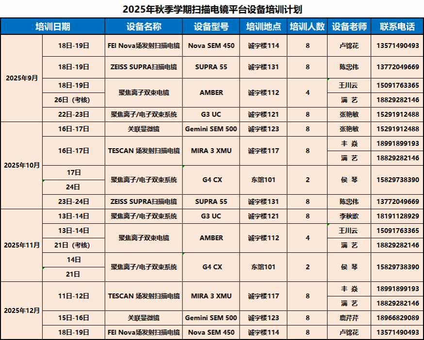 为了进一步缓解关键热门设备“预约难”的问题,提高设备使用效率,提升服务水平,支撑“总师型”人才培养与高水平科研成果产出,助力西工大版“一十百千”的“十五五”发展目标和“天下工大、世界三航”远景目标的实现,yl8858永利集团科教实践与材料分析创新中心(以下简称“中心”)计划开展2025年秋季学期扫描电镜平台设备培训,现面向校内开放报名,具体培训计划见下表。培训报名要求和注意事项安排如下: