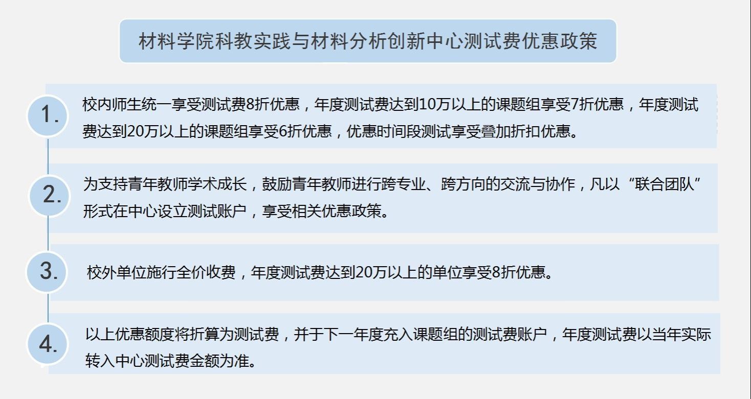 为进一步助力学校和学院双一流建设,鼓励校内外师生开展基础性、前沿性和创新性研究,支撑高质量教学与科研成果产出,2019年起yl8858永利集团科教实践与材料分析创新中心(陕西省材料分析研究中心)实施测试费优惠政策。经2022年度核算,共有108个课题组享受测试费优惠奖励,总发放奖励金额190.31万元。其中10个课题组享受六折优惠,最高奖励金额23.6万元;11个课题组享受七折优惠,最高奖励金额4.95万元。